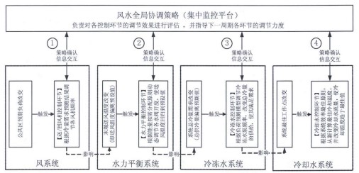 通過集中監控平臺中的風水系統全局協調策略實現各控制環節間的相互協調控制 若出現大部分末端或所有末端的送風溫度均高于設定值,表明水系統總的水流量不足,不能滿足末端負荷對冷量的需求,集中監控平臺將通知冷凍水控制環節升高循環水泵的運行頻率,增大水系統總的水流量,來滿足各個環路對冷量的需求。